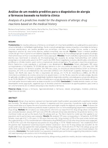 Palavras -chave: Alergia a fármacos, hipersensibilidade a fármacos, estudo alergológico, modelos preditivos,