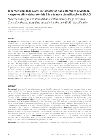 Palavras -chave: Anti -inflamatórios não esteroides, hipersensibilidade, classificação, teste de ativação dos basófilos.