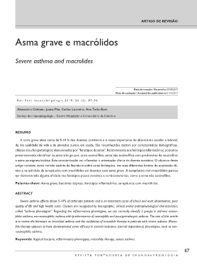 Palavras -chave: Asma grave, bactérias atípicas, fenótipos inflamatórios, terapêutica com macrólidos.
