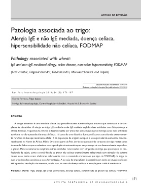 plamente discutidos. A alergia ao trigo IgE mediada e não IgE mediada engloba duas entidades com fisiopatologia e