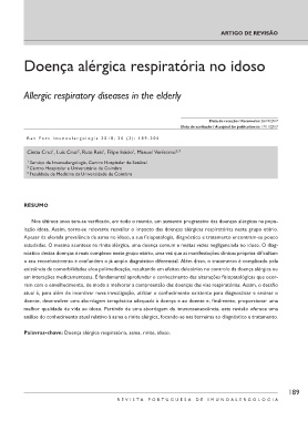 lação idosa. Assim, torna -se relevante reavaliar o impacto das doenças alérgicas respiratórias neste grupo etário.
