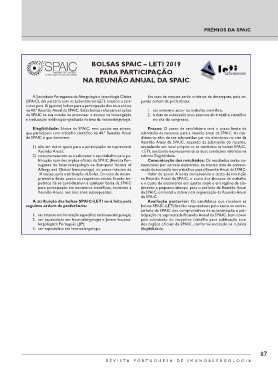 na 40.ª Reunião Anual da SPAIC. Estas bolsas reforçam as ações 1. ser primeiro autor no trabalho científico;