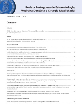 Revista Portuguesa de Estomatologia, Medicina Dentária e Cirurgia Maxilofacial Reviewers: 2017 ....................................... 65