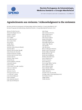 Revista Portuguesa de Estomatologia, Medicina Dentária e Cirurgia Maxilofacial Reviewers: 2017