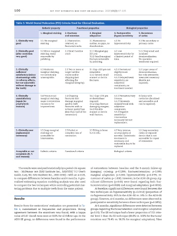 Table 3. World Dental Federation (FDI) Criteria Used for Clinical Evaluation.