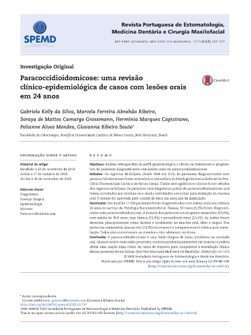 Recebido a 24 de novembro de 2019 tico de pacientes diagnosticados com lesões orais de paracoccidioidomicose.