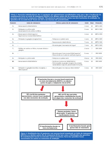 Tabela 3. Descrição individualizada dos 11 pacientes que apresentaram manifestações orais com o tipo e localização da