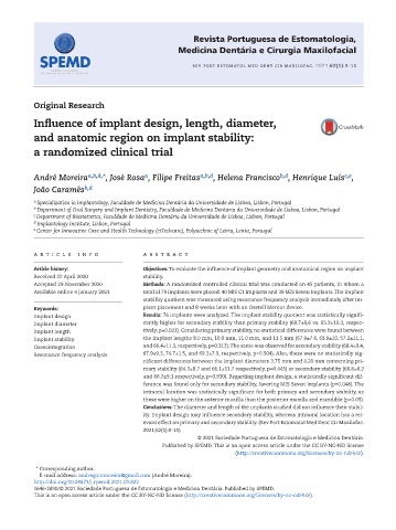 1646-2890/© 2021 Sociedade Portuguesa de Estomatologia e Medicina Dentária. Published by SPEMD.