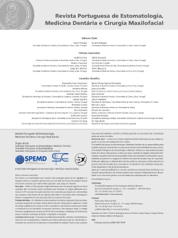 Órgão oficial: A Sociedade Portuguesa de Estomatologia e Medicina Dentária não se responsabiliza pelas