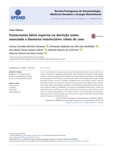 Historial do artigo: O freio labial superior, frequentemente, pode apresentar alteração em sua estrutura e